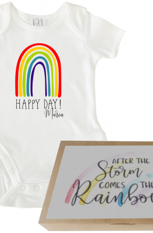 Baby-Body in weiß mit selbst designetem motivierendem Spruch (Lettering).