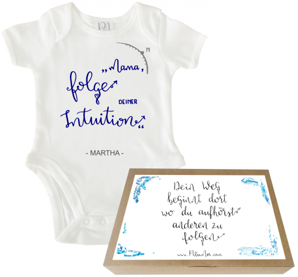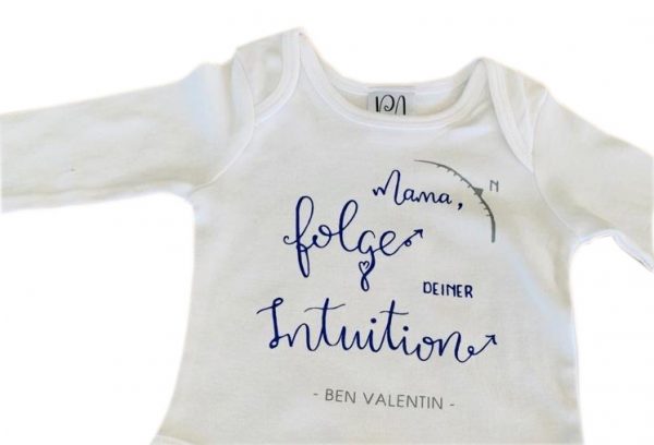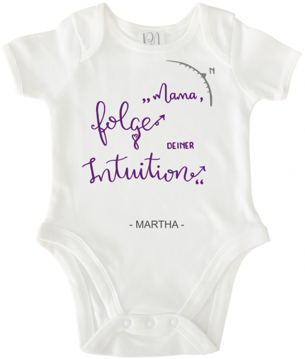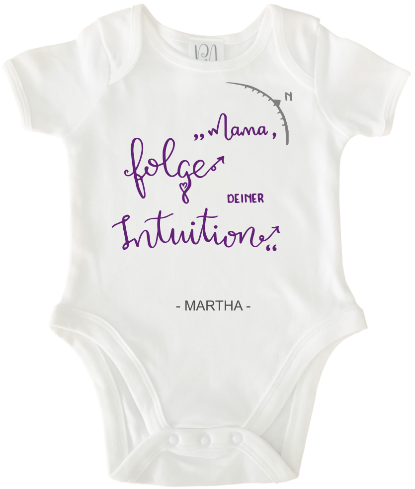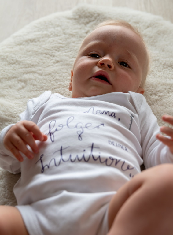 Baby-Body in Weiß mit einem selbst designten motivierenden Spruch (Lettering).